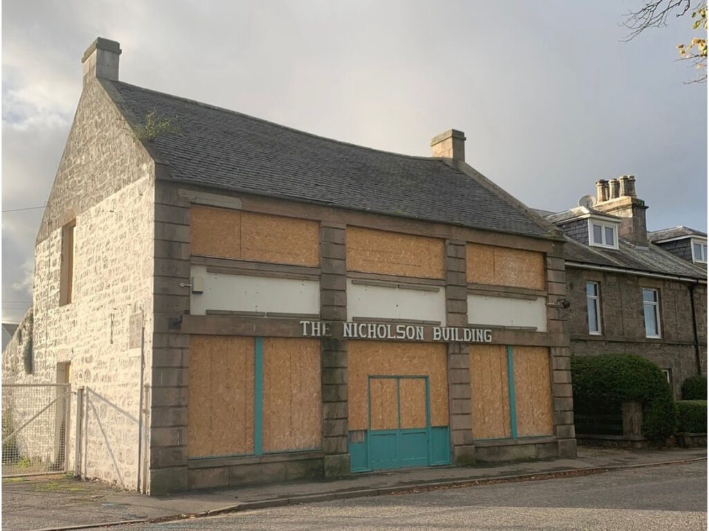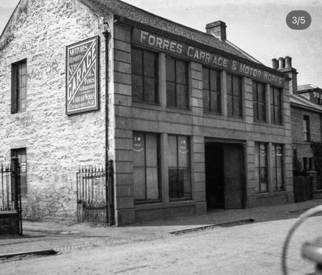 Built in the late 19th century or early 20th, the building was originally the Forres Carriage and Motor Works.